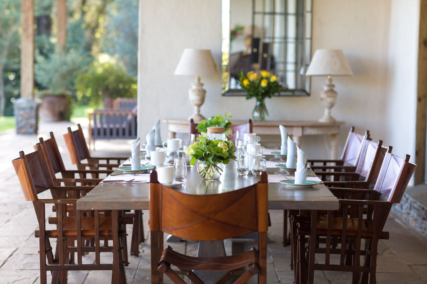 The house has six ensuite bedrooms, each well-appointed and cheerful in effortless farmhouse chic. The rooms open up through wide French windows to tremendous views of the African bush; you can sit on your private verandah sipping your early morning tea quite away from the world.